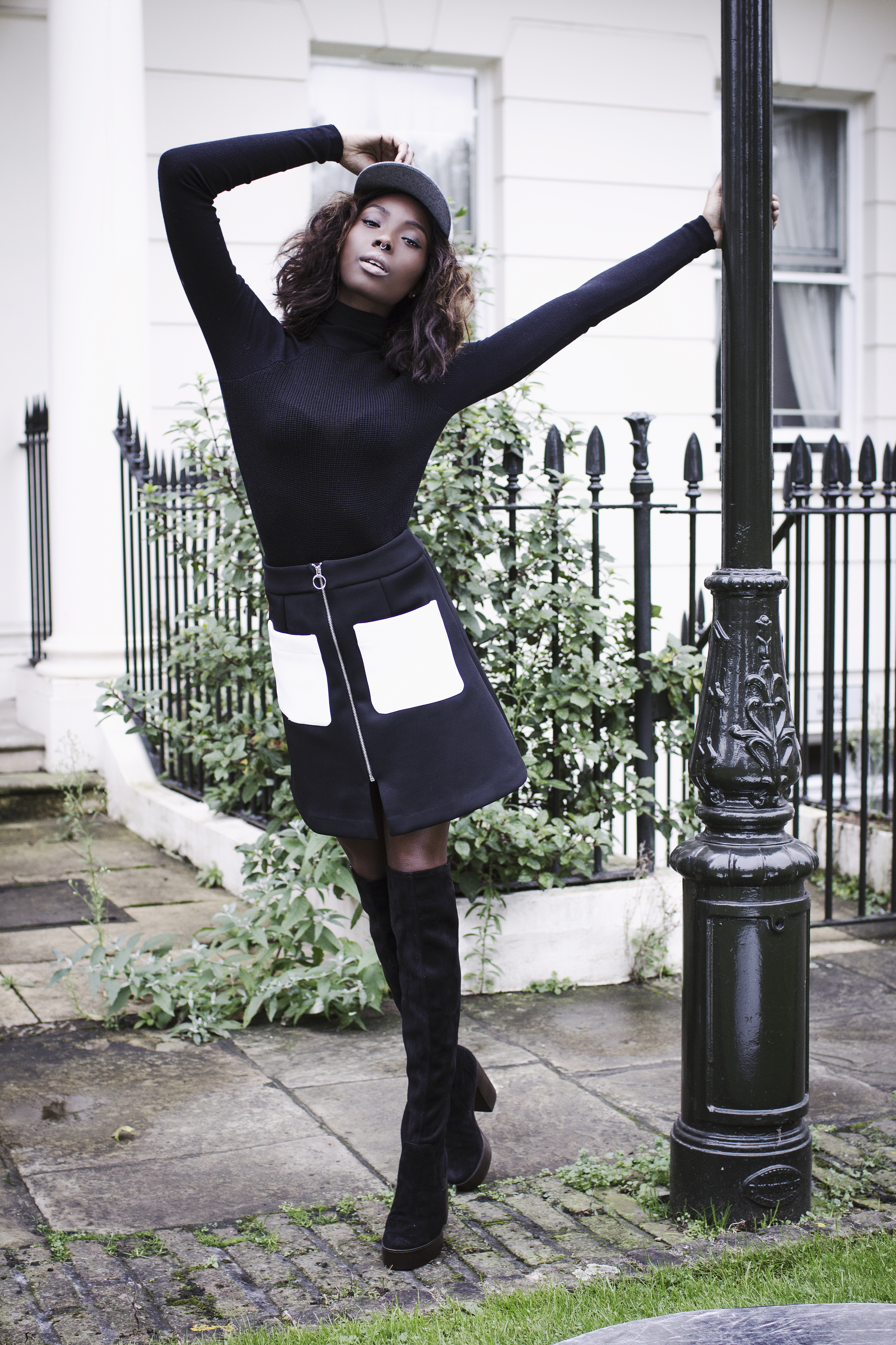 Im not really into black but this is a fave look for Autumn. Thigh highs and an A-line colour block skirt, the roll neck completes the look and gives the look a 70s inspired feel.
